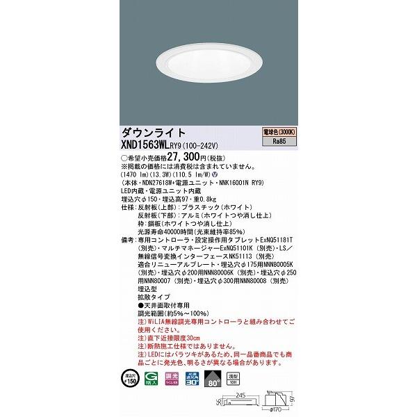 ■返品区分:「返品」お客様都合による返品・交換は受付いたしません。仕様等はご注文前に必ずご確認ください。天井照明 施設用照明器具パナソニック XND1563WLRY9 LED 電球色 WiLIA無線調光 NDN27618W + NNK16001NRY9 20200226 家具、インテリア 照明器具 天井照明、シーリングライト ダウンライト 照明器具 施設用照明器具 ダウンライト LED WiLIA無線調光XND1563WLRY9 商品説明