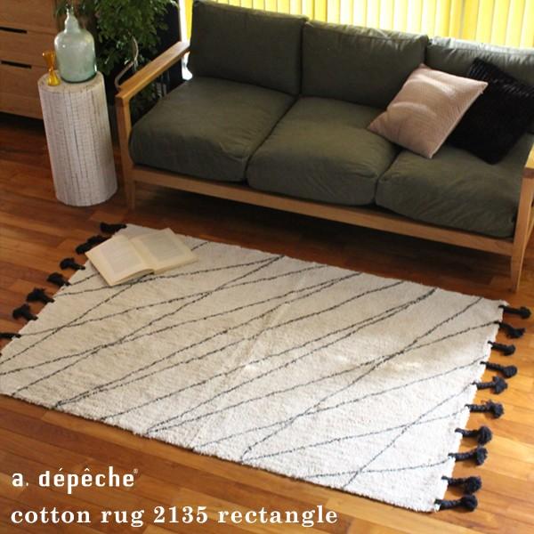 ラグ 厚手 モノトーン 『コットン ラグ 2135 レクタングル』送料無料 140x200 おしゃれ 綿 コットン 北欧 模様 春夏秋冬 シャギー リビング マット 絨毯