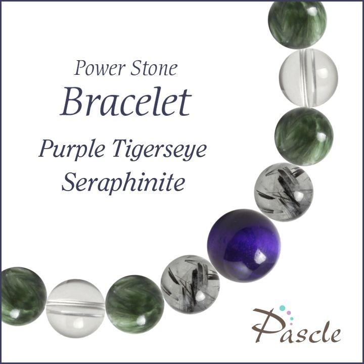 パワーストーン ブレスレット パープルタイガーアイ・セラフィナイト 仕事運 金運 人間関係 癒し
