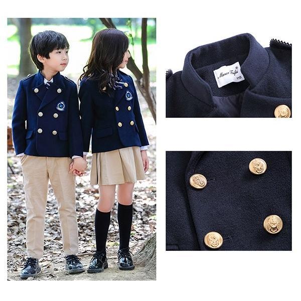 3点セット 冬服 学生制服 子供チェスターコート 卒業 入園 女の子 男の子 受験 小学校 中学生 キッズ通園 通学 子供服 卒園式 発表会 ネイビー