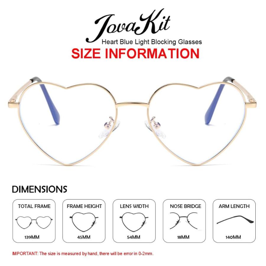 | 商品コメント | ULTRA-LIGHT AND ULTRA-THIN FRAMES - These JOVAKIT blue light glasses are made of ultra-thin stainless-steel materials, the frames are super light but very strong. These weights are only about 17.7g, so you will feel very comfortable and no pressure on your nose.br PROTECTION FOR YOUR EYES - JOVAKITs blue light glasses can protection your eyes, alleviates visual fatigue and discomfort from long periods of web surfing, gaming and working under fluorescent lights. Antiblue ray lenses can filter 100% harmful blue light, help stably generating of melatonin guarantees sleep quality.br CLASSIC & FASHION STYLE ?A trendy pair of geometric blue light glasses that make for the perfect accessory while protecting your eyes. The heart shape of the frames makes it standout while the overall look remains understated. With exceptional quality, performance and comfort, great for Computer Reading, looking TV, and playing games, or used as party, cosplay costume accessories. An affordable pair of sunglasses to add to your style collection.br PRODUCT SIZE ? Lens Width 54mm, Frame Height 45mm, Nose Bridge 18mm, Frame Width 139mm, Temple Length 140mm, Net Weight 17.7g.br GIFT IDEAS PACKAGE ? Heart Blue Light Blocking Glasses *1, microfiber pouch*1, microfiber glasses cleaning cloth*1, mini screwdriver * 1, exquisite package box*1. We also have Lifetime Breakage Warranty on frame & lens, 100% Satisfy and 30 Days Money Back Guarantee You have no risk to try |