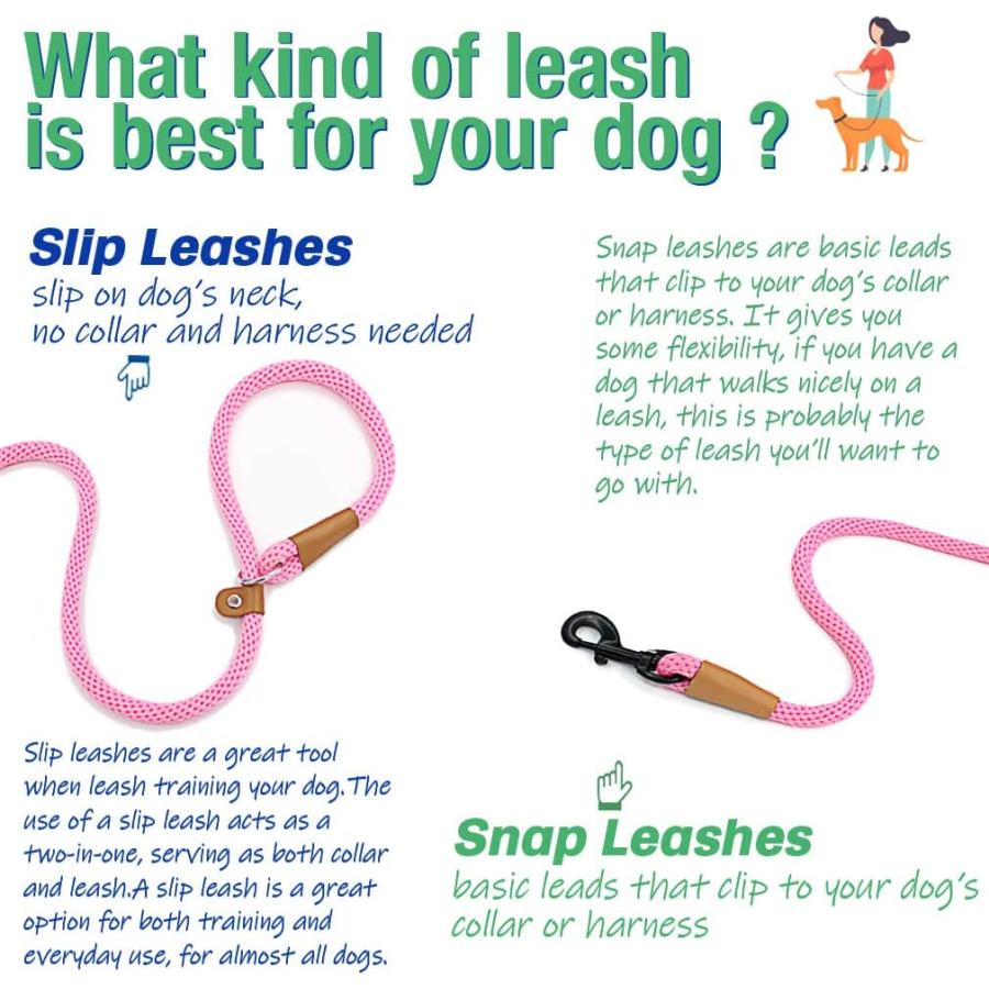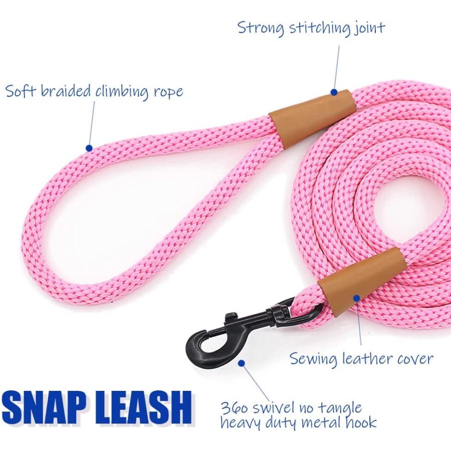 Lynxking Dog Leash Slip Lead and Snap Hook Leash Braided Rope Durable Pet Strong Training Traffic Walking Lead Leash for Large Medium Dogs Small Puppy (Pink, Snap Leash-Large 1/2in x 6ft)
