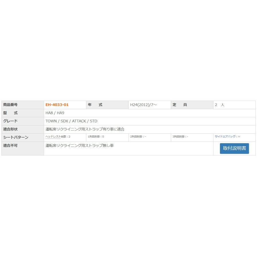 | 【年式/型式】 | H24(2012)/7〜/HA8 HA9/ TOWN/SDX/ATTACK/STD 運転席リクライニング用ストラップ有り車 |