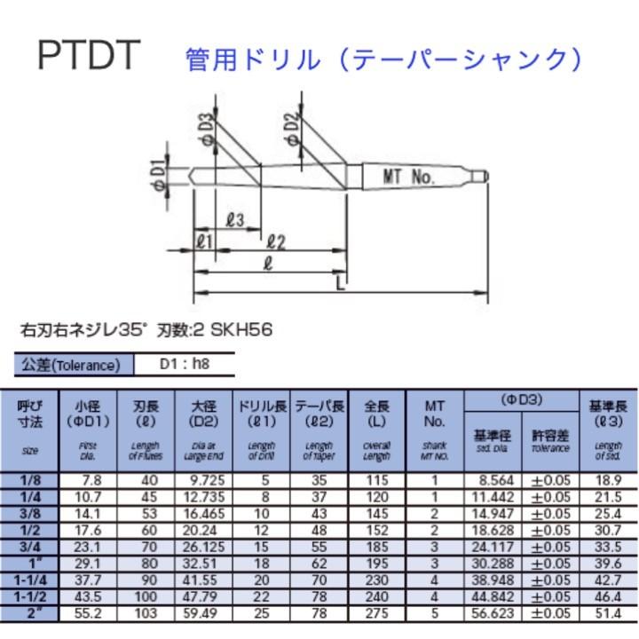 【送料無料】 栄工舎 PTDT 1/4 管用ドリル テーパーシャンク SKH56