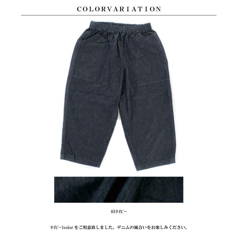 色落ちしない薄手の6ozデニムを使用した コクーンシルエットが可愛らしい8分丈パンツです。