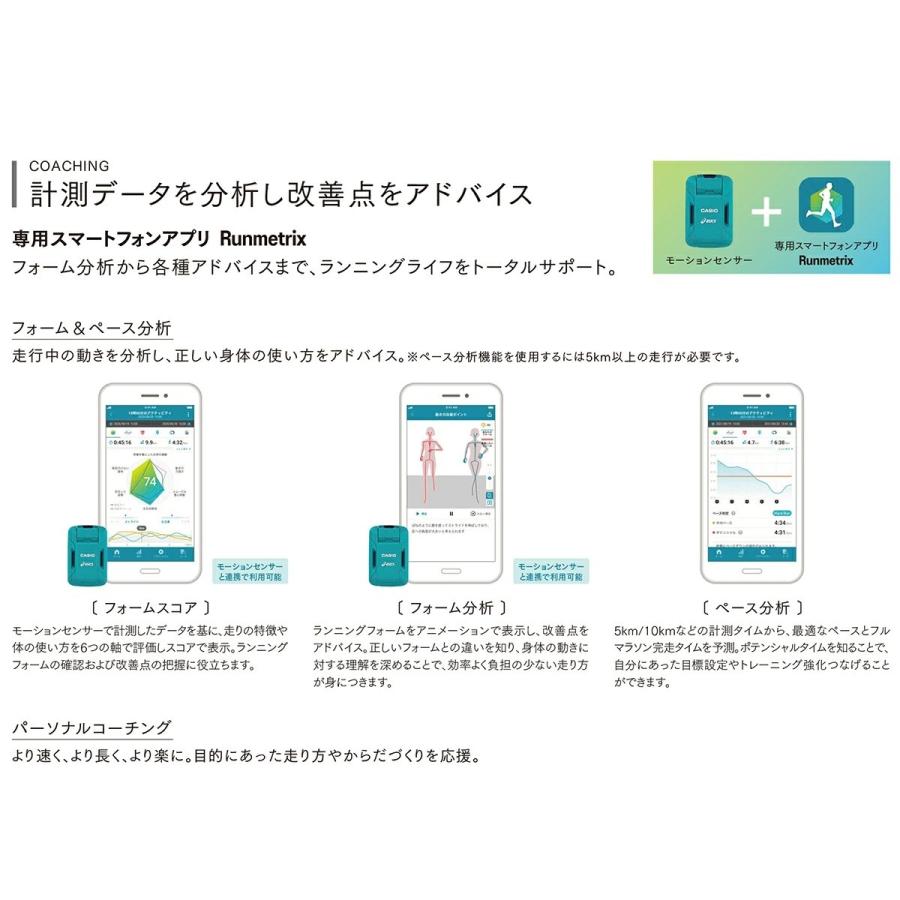 【カシオ CASIO × アシックス ASICS モーションセンサー Runmetrix CMT-S20R-AS カシオとアシックスの共同開発により、新たなランナー向けサービス「Runmetrix」が誕生します。カシオのセンシング技術、ウェアラブル技術と、アシックスのスポーツ工学に関する知見、ノウハウ、ビッグデータの融合により、ランナーひとりひとりに最適な情報を提供。モーションセンサーは、GPS機能+9軸センサーを搭載し、スマートフォンなしでランニング中の身体の動きを細かく計測可能。ウェアに装着して走ることで、ピッチ、ストライドはもちろん、上下動や左右の傾きなど、20種類以上のランニング指標を測定できます。また、専用のスマートフォンアプリ「Runmetrix」を新たに開発。モーションセンサーの計測データをアプリで確認できるほか、ランニングフォームやペースの分析、トレーニングプランやからだづくりのアドバイスまで、パーソナルコーチとして日々の運動をアシストします。自分らしく走る喜びをすべての人に。新たなランニング体験が、いま始まります。「カシオ Gショック CASIO G-SHOCK 2021 新作」「国内正規品」】