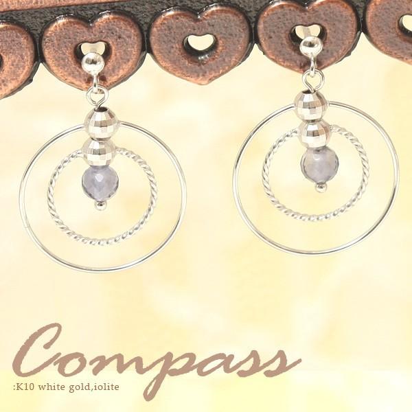 K10ホワイトゴールド WG アイオライト・プラネットサークルモチーフ・ピアス