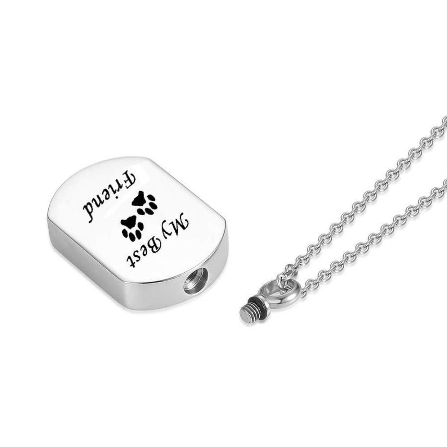 ペット火葬メモリアルジュエリー ステンレススチール 記念品ペンダント アッシュホルダー 足跡プリント 骨壺ペンダントネックレス 犬猫の灰 1.1*0.