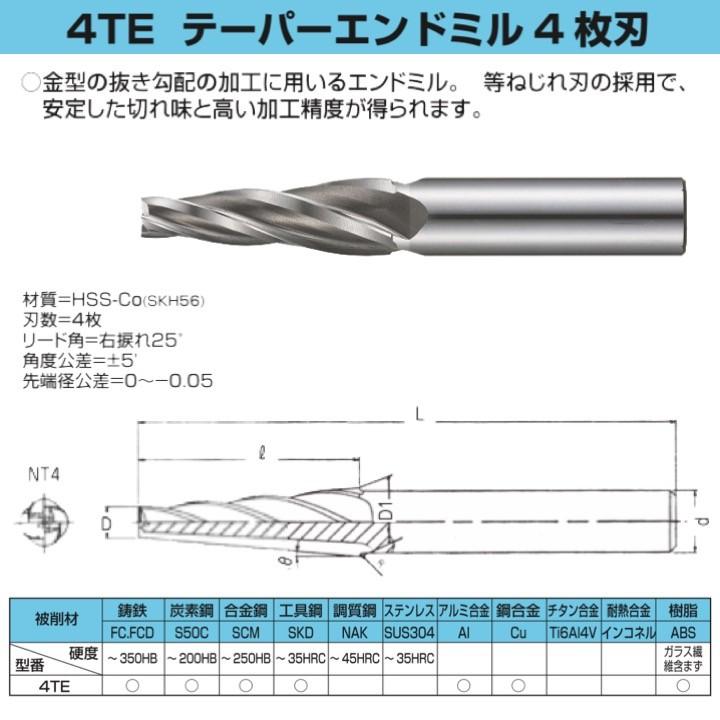 【送料無料】 フクダ精工 FKD 4TE 1°x12 テーパーエンドミル2枚刃