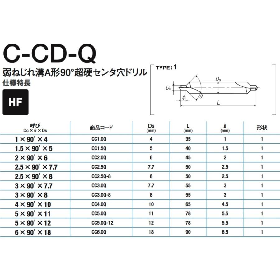 【送料無料】YAMAWA 超硬センタードリル C-CD-Q 1.5 (1.5x90°x5) CC1.5Q (在庫区分 C)