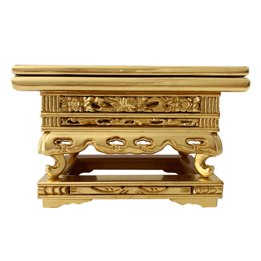 仏具 経机 机 卓 真宗大谷派 東 前三段 華鋲卓 4.5寸 朱塗り 花鋲卓